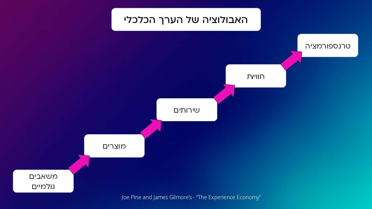 משאבים גולמיים -> מוצרים -> שירותים -> חוויות.